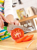 Zdjęcie "przygotowywania żywności. kobieta cięcia czerwony pomidor" może być wykorzystywane do celów osobistych i komercyjnych zgodnie z warunkami zakupionej licencji Royalty-free. Obraz jest dostępny do pobrania w jakości wysokiej rozdzielczości do 5760x3840.