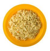 smaczny makaron instant z warzywami w miska na białym tle
