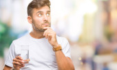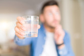 Zdjęcie "Młody przystojny mężczyzna picie szklanki wody w domu przestraszony w szoku z twarzą niespodzianka, boi się i podekscytowany wyrazem strachu" może być wykorzystywane do celów osobistych i komercyjnych zgodnie z warunkami zakupionej licencji Royalty-free. Obraz jest dostępny do pobrania w jakości wysokiej rozdzielczości do 5760x3840.