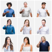 Młody przystojny mężczyzna picie szklanki wody w domu przestraszony w szoku z twarzą niespodzianka, boi się i podekscytowany wyrazem strachu