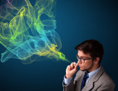 młody człowiek palenia papierosów niebezpieczne z czaszki toksyczny dym