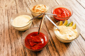 Zdjęcie "Miski z sosami na drewniana Taca" może być wykorzystywane do celów osobistych i komercyjnych zgodnie z warunkami zakupionej licencji Royalty-free. Obraz jest dostępny do pobrania w jakości wysokiej rozdzielczości do 5760x3840.