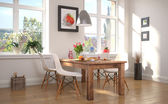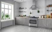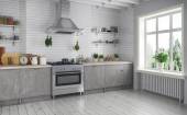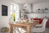 Renderowanie 3D skandynawskiego mieszkania z kuchnią