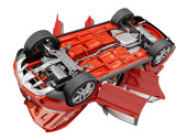 multi link przód samochodu zawieszenie, z hamulcem. fotorealistyczne 3 d