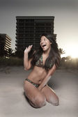 Zdjęcie "kobieta w bikini z ramiona wydłużyły się zewnątrz" może być wykorzystywane do celów osobistych i komercyjnych zgodnie z warunkami zakupionej licencji Royalty-free. Obraz jest dostępny do pobrania w jakości wysokiej rozdzielczości do 5760x3840.