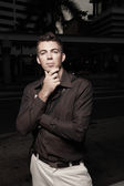 Zdjęcie "przystojny mężczyzna pozowanie w nocy" może być wykorzystywane do celów osobistych i komercyjnych zgodnie z warunkami zakupionej licencji Royalty-free. Obraz jest dostępny do pobrania w jakości wysokiej rozdzielczości do 5760x3840.