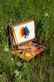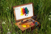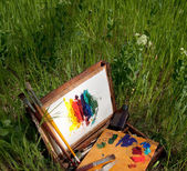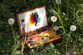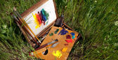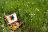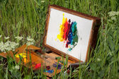 przypadku malarza na trawie z palety, artystyczne narzędzia i malarstwa abstrakcyjnego