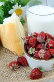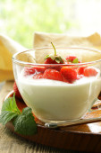 Deser mleczny - jogurt ze świeżymi truskawkami w szklance