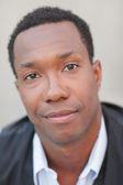 młody biznesmen african american, spoglądając na boki