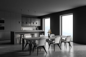Zdjęcie "Szary kącik kuchenny z licznikami i stołem" może być wykorzystywane do celów osobistych i komercyjnych zgodnie z warunkami zakupionej licencji Royalty-free. Obraz jest dostępny do pobrania w jakości wysokiej rozdzielczości do 5760x3840.