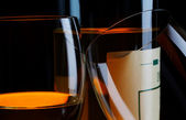 Widok kieliszki i butelkę sylwetka na kolor ognia powrót