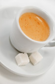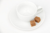 metalowe sito i cukru trzcinowego na płytce na białym tle na biały backgro