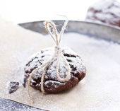 świeże ciasteczka czekoladowe na białym tle drewniane
