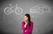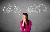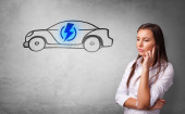 Osoba myśli z concept car ciągnione