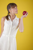 portret uśmiechając się i studentów dziewczyna pozuje na czerwony deseń