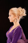 bardzo młoda kobieta ze stawianiem stojący duży worek żółty