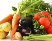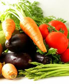 wiosną świeże warzywa - marchew, pomidory, szparagi, bakłażana i ziemniaków