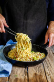 Zdjęcie "człowiek gotowanie Spaghetti z sosem pomidorowym" może być wykorzystywane do celów osobistych i komercyjnych zgodnie z warunkami zakupionej licencji Royalty-free. Obraz jest dostępny do pobrania w jakości wysokiej rozdzielczości do 5760x3840.