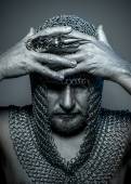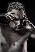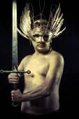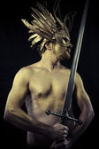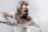 wojownik Piktów, lizanie miecz, objęte w błocie i nago