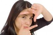 Indyjski biznes kobieta koncentruje się ręcznie dziura.