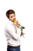 Zdjęcie "człowiek z różą" może być wykorzystywane do celów osobistych i komercyjnych zgodnie z warunkami zakupionej licencji Royalty-free. Obraz jest dostępny do pobrania w jakości wysokiej rozdzielczości do 5760x3840.
