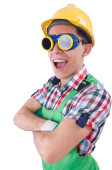 Zdjęcie "Śmieszny budowlaniec odizolowany na biały" może być wykorzystywane do celów osobistych i komercyjnych zgodnie z warunkami zakupionej licencji Royalty-free. Obraz jest dostępny do pobrania w jakości wysokiej rozdzielczości do 5760x3840.