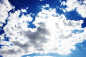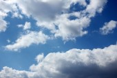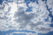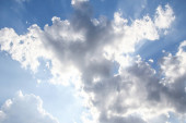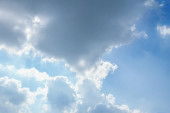 Fantastyczne miękkie białe chmury przeciwko błękitnemu niebu