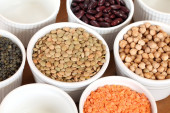 miski z różnego rodzaju soczewicy, fasoli i ciecierzycy.