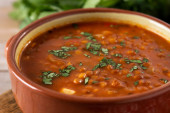 Zdjęcie "Harira zupa w misce na drewnianym stole. Typowe specjały marokańskie. Koncepcja Ramadan. Z bliska" może być wykorzystywane do celów osobistych i komercyjnych zgodnie z warunkami zakupionej licencji Royalty-free. Obraz jest dostępny do pobrania w jakości wysokiej rozdzielczości do 5760x3840.