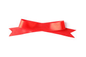 Prosta czerwona wstążka na białym tle, widok z góry. Świąteczna Dekoracja