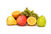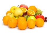 różne owoce na białym tle