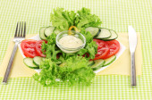 smaczne palona plastry kostnego i pomidor, sałatka z liści, na jasnym tle