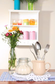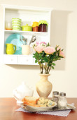 kompozycja kuchnia na stole na tle półka