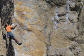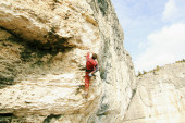 człowiek wspina się ściany.