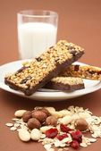 Mąka pełnoziarnista została na drewniane łyżki, owies i kukurydzy