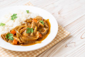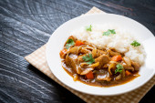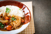 Japoński curry ryż z plasterki wieprzowiny, marchwi i cebuli