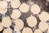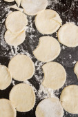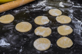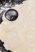 Walcowane surowe ciasto pokrojone w Roundels na stole z rozproszonymi