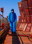 maski fabryka maska maseczka mężczyzna niebieski ochrona pomarańczowy przebranie roślina twarz w twarzy