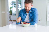 Zdjęcie "Przystojny mężczyzna jedzenie zielony groszek w domu" może być wykorzystywane do celów osobistych i komercyjnych zgodnie z warunkami zakupionej licencji Royalty-free. Obraz jest dostępny do pobrania w jakości wysokiej rozdzielczości do 5760x3840.