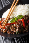Pyszne kurczaka z bazylii z papryki chili i sosem sojowym z Ric