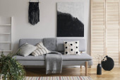 Zdjęcie "Krzesło wiklinowe obok drewnianego bloku stolik w modnej wnętrza salonu" może być wykorzystywane do celów osobistych i komercyjnych zgodnie z warunkami zakupionej licencji Royalty-free. Obraz jest dostępny do pobrania w jakości wysokiej rozdzielczości do 5760x3840.