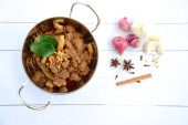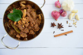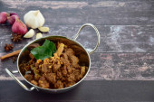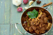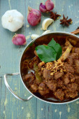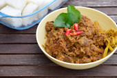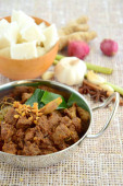Rendang Padang, mięso wołowe gotowane w mleku kokosowym i przyprawy, indonezyjski żywności