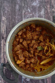 Rendang Padang, mięso wołowe gotowane w mleku kokosowym i przyprawy, indonezyjski żywności