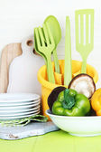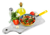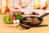 makaron z warzywami na woku na tle przyrody
