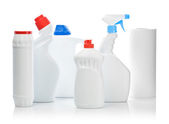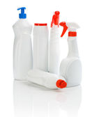 różnego rodzaju środków czyszczących w domu, na białym tle