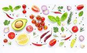 Zdjęcie "Różnych świeże warzywa i zioła na białym tle. " może być wykorzystywane do celów osobistych i komercyjnych zgodnie z warunkami zakupionej licencji Royalty-free. Obraz jest dostępny do pobrania w jakości wysokiej rozdzielczości do 5760x3840.