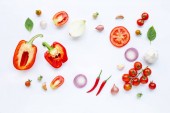 Różne świeże warzywa i zioła na białym tle. Zdrowe