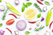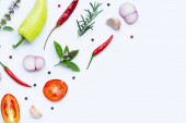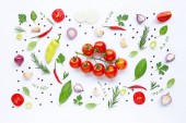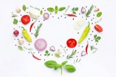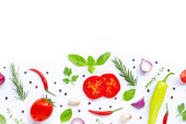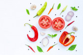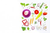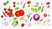 Różne świeże warzywa i zioła na białym tle. Zdrowe