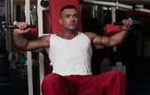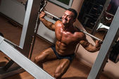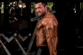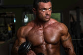 budowniczy ciało robi ciężar ćwiczeń na biceps z hantle