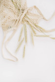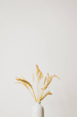 Kolce pszenicy bukiet w drewnianym wazonie na białym tle.
